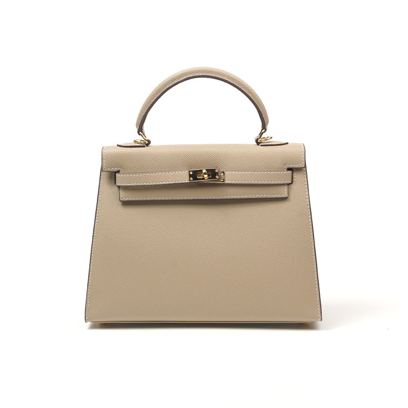 The Cowhide Kendlee Saddler is a full-grain leather handbag that combines architectural structure with a refined, tactile finish. Its surface features a tightly embossed, uniform grain that lends it a polished, semi-matte luster — a texture often praised for its durability and ability to maintain form.